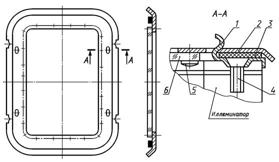 Ключевые слова: прямоугольный иллюминатор, глухой, створчатый, универсальный иллюминатор, корпус, рама, рамка, стекло, уплотнительная прокладка, задрайка