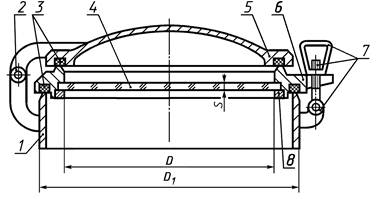 1 - щиток; 2 - прокладка; 3 - задрайка (шпилька, барашек); 4 - иллюминатор