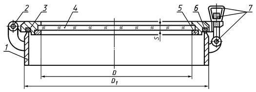 5.6 Три образца от первой партии серийно изготовленных иллюминаторов со штормовыми крышками должны быть испытаны предприятием-изготовителем на механическую прочность без стекла, с закрытой крышкой.