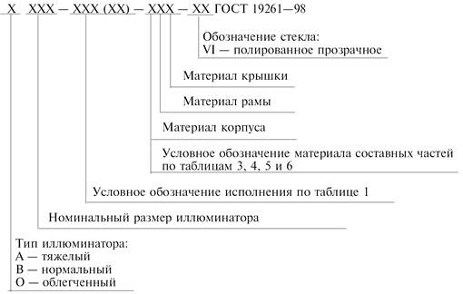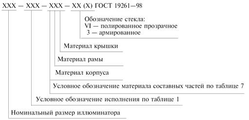 3.2 Исполнения иллюминаторов и их условные обозначения должны соответствовать указанным в таблице 1.