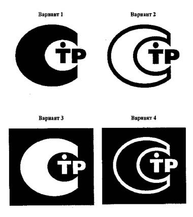 Знак обращения на рынке представляет собой сочетание букв "Т" (с точкой над ней) и "Р", вписанных в букву "С", стилизованную под измерительную скобу, имеющую одинаковые высоту и ширину.