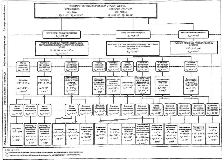 Ключевые слова: государственный первичный эталон, государственная поверочная схема, рабочий эталон, рабочее средство измерений, сила света, освещенность, световой поток, яркость