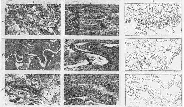 Привлечение аэрофотосъемочного материала для изучения речных русел открыло новый этап в развитии теории руслового процесса и в ее практическом использовании. Так, обработанный в Государственном гидрологическом институте (ГГИ) массовый аэрофотосъемочный и картографический материал открыл широкие возможности для формирования некоторых важных положений гидроморфологической теории руслового процесса, а также для внедрения результатов съемок рек в практику его гидроморфологического анализа [23, 26, 36]. Методическая сторона применения аэрофотосъемок при исследовании режима русел и пойм получила отражение в Рекомендациях [38, 39].