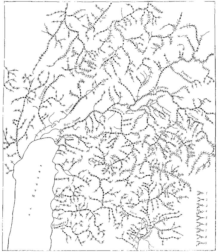 По аэрокосмическим материалам средних масштабов выделяются (оконтуриваются) участки с интенсивным поднятием земной коры по наличию врезанных излучин. Форма «свободно меандрирующих» на разных стадиях развития излучин сохраняется на участках правобережных притоков р. Зеи (от р. Мульмуган до р. Унахи) (рис. 15). Здесь же выявляется изменение стока почти на порядок. Современные долины сохраняют извилистость древних русел.