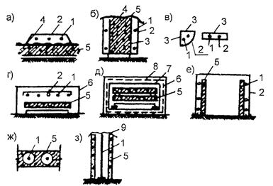Состоит из плоских элементов различных материалов, остающихся после бетонирования в теле конструкции, и инвентарных поддерживающих элементов (профилированный настил, сетчатая опалубка, стеклоцемент и т.д.) |