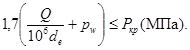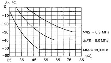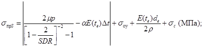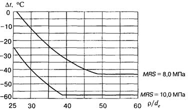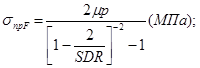 где MRS - показатель минимальной длительной прочности полиэтилена, использованного для изготовления труб и соединительных деталей, МПа (для ПЭ 80 и ПЭ 100 этот показатель равен 8,0 и 10,0 МПа соответственно);