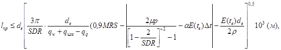 4.2 Толщина стенки полиэтиленовой (в том числе профилированной) трубы характеризуется стандартным размерным отношением номинального наружного диаметра к номинальной толщине стенки (SDR), которое следует определять в зависимости от давления в газопроводе, марки полиэтилена и коэффициента запаса прочности по формуле (1)