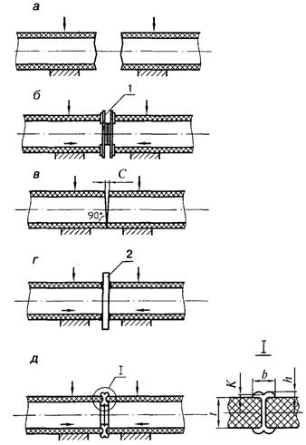 a - отрыв при растяжении; б - отрыв при сжатии