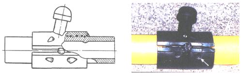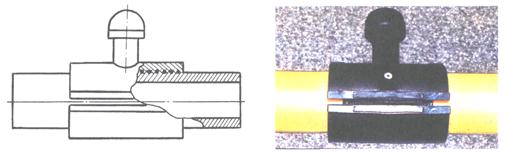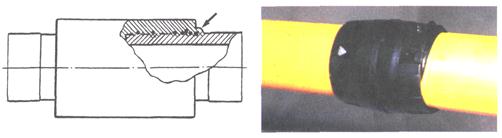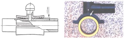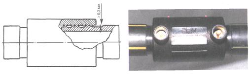 Образец фиксируют таким образом, чтобы удар падающим грузом был направлен параллельно оси трубы, ось бойка пересекалась с осью горловины седлового отвода и удар приходился посередине крышки. После нанесения первого удара образец разворачивают на 180°, чтобы следующий удар нанести с противоположной стороны.