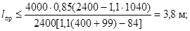 Длина пролета между роликовыми опорами |