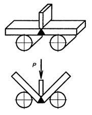 Нагрузка передается на образец через траверсу, устанавливаемую на середине образца напротив сварного шва. Местное утолщение грата образца со стороны опорной траверсы снимается.