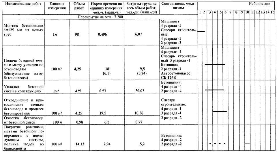 2.2 Укладка бетонной смеси в перекрытия выполняется автобетононасосом СБ-126Б в комплекте с автобетоносмесителями СБ-92-1А. Определение средней эксплуатационной производительности автобетононасоса СБ-126Б приводится в приложении 1.