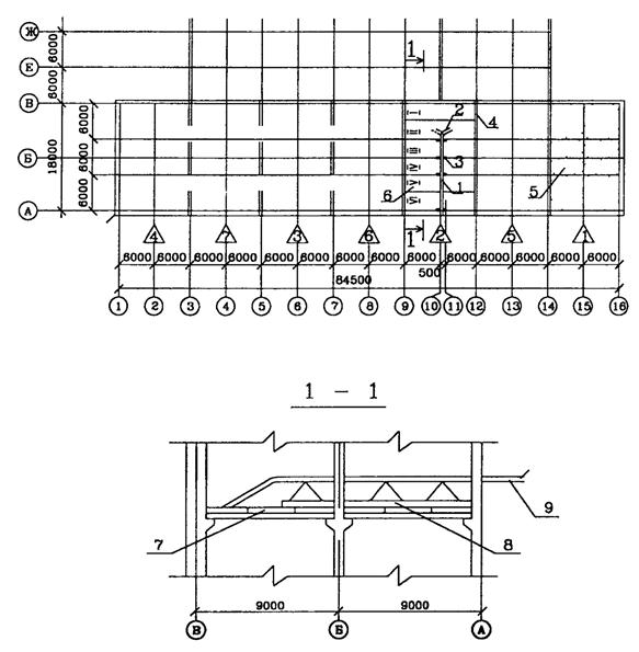 2.4 Укладка бетонной смеси в перекрытие ведется по захваткам в определенном порядке (рис. 1). Захватки определяются из условия сменной (суточной) эксплуатационной производительности автобетононасоса, минимальной дальности подачи бетонной смеси и от того, ведется ли бетонирование только с помощью стрелы автобетононасоса или с помощью бетоновода.