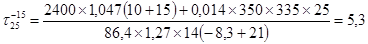 Согласно п. 1.5 настоящей карты критическая прочность для бетона класса В25 составляет 25 %. Тогда подставляем известные из условия задачи величины в формулы 1 и 2 и, принимая tк = -15 °C согласно п. 1.5, находим, что