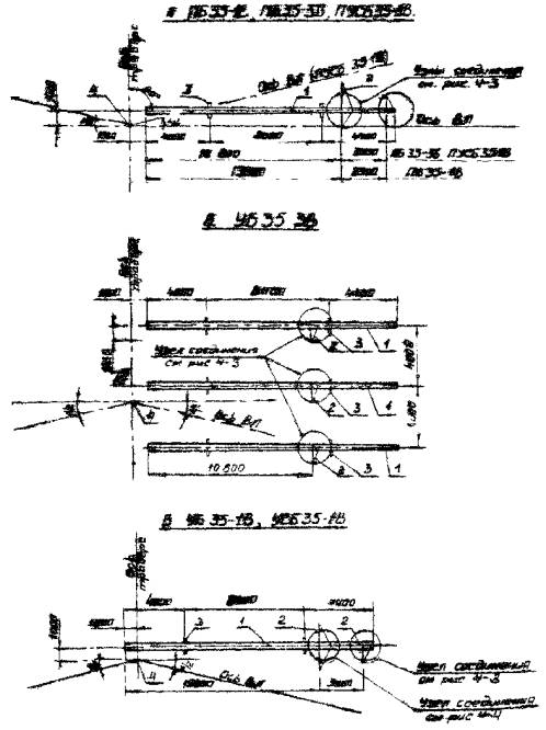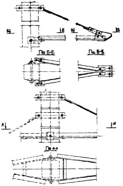 Рис. 4-4. Узлы крепления траверсы В-5 к опорам типов УБ35-1В и УСБ35-1В.