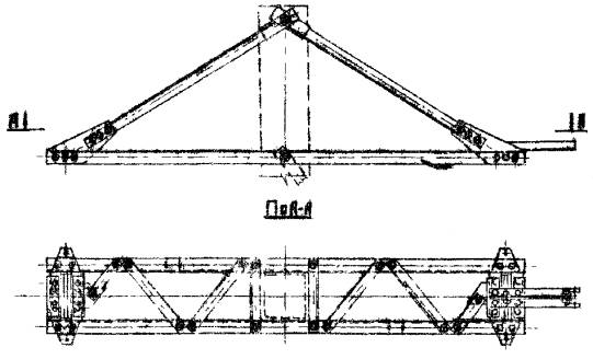 в) звеньевой и электролинейщик 3 разряда, согласно рабочему чертежу опоры, устанавливают хомуты, траверсы и тросостойку (если она предусмотрена проектом), при этом траверсы В-1, В-2, В-3, В-4, В-6 (рис. 4-3) устанавливают вручную, а траверсу В-5 (рис. 4-4) с помощью крана;
