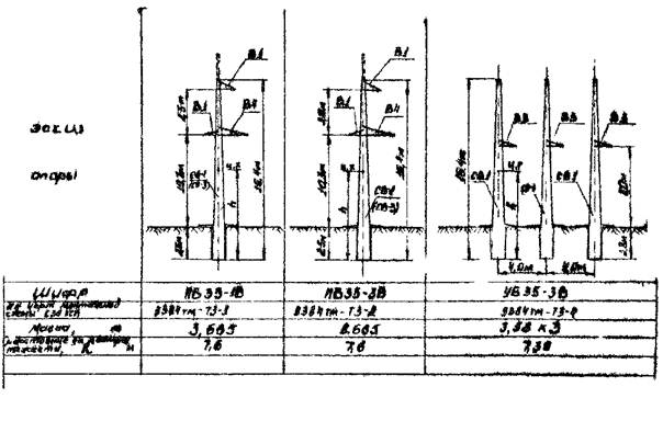 Рис. 0-2. Унифицированные опоры с вибрированными стойками на оттяжках