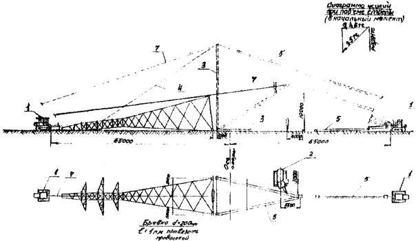 в) Смонтировать на оголовке стрелы тросы от стрелы к опоре (вожжи) и трос для опускания и подъёма стрелы;