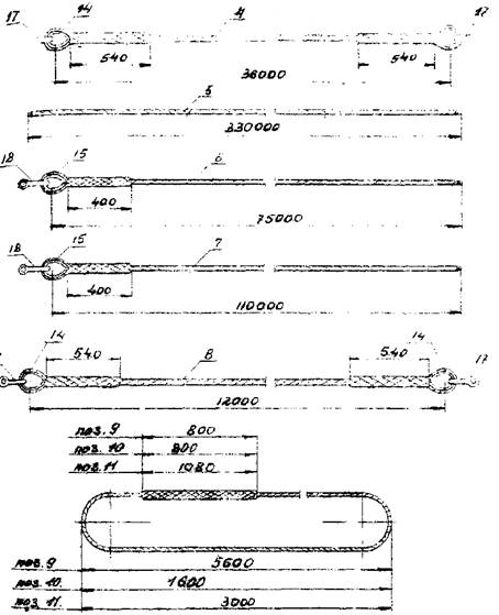 в) произвести застроповку тягового и тормозного тросов в местах, указанных на рис. 4, лист 17, для опоры П110-5 и рис. 10 лист 28, для опоры П110-6;