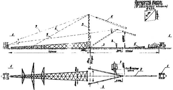 в) Смонтировать на оголовке стрелы тросы от стрелы к опоре (вожжи) и трос для опускания и подъёма стрелы;
