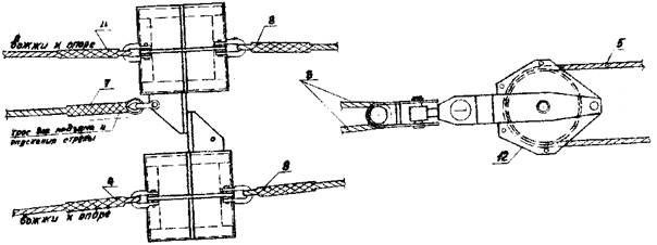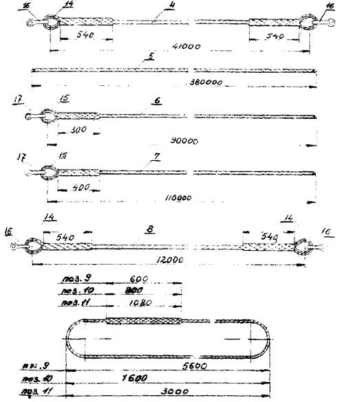 в) произвести застроповку тягового и тормозного тросов в местах, указанных на рис. 4, лист 17, для опоры П110-5 и рис. 10 лист 28, для опоры П110-6;