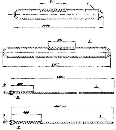 в) произвести застроповку тягового и тормозного тросов в местах, указанных на рис. 4, лист 17, для опоры П110-5 и рис. 10 лист 28, для опоры П110-6;