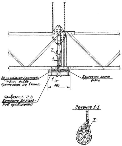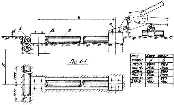 а) укрепить железобетонные подножники временными деревянными распорками (рис. 1). В зимнее время, при промерзании грунта на 25 см и глубже, распорки не ставятся.