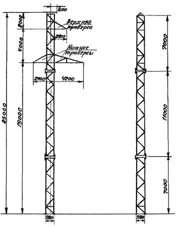 и) после подъема опору закрепить навинчиванием гаек на анкерные болты, при этом они (гайки) не должны доходить вплотную к поверхности башмаков опоры. Затем опору можно наклонить тяговым полиспастом и снять монтажные шарниры;
