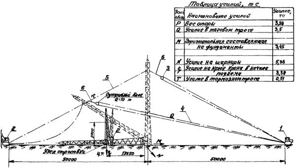 6.36. В момент подъема опоры находиться под опорой, между тяговым механизмом и опорой, под тяговыми и тормозными тросами, стрелой и расчалками запрещается.
