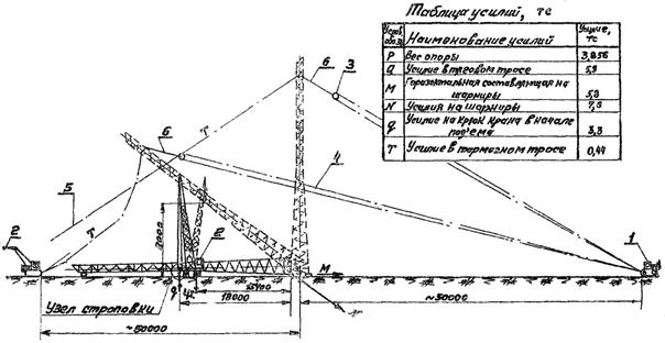 6.36. В момент подъема опоры находиться под опорой, между тяговым механизмом и опорой, под тяговыми и тормозными тросами, стрелой и расчалками запрещается.