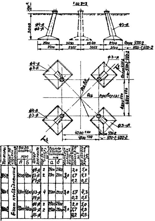 Рис. 1. Схема фундаментов под опоры У35-2, У110-1, У110-2