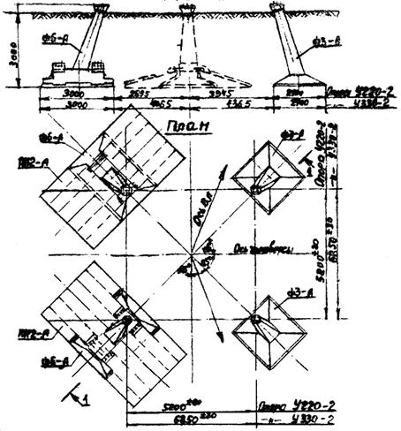 Рис. 2. Схема фундаментов под опоры У220-1, У220-3, У330-1