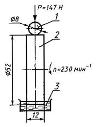 1 - неподвижный образец; 2 - подвижный образец; 3 - испытуемый смазочный материал