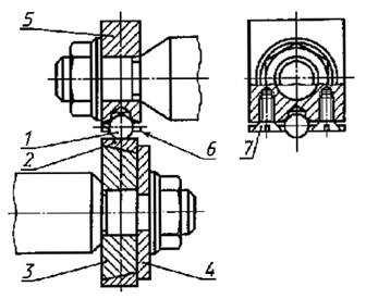 1 - неподвижный образец; 2 - подвижный образец; 3 - конус; 4 - шайба; 5 - колодка; 6 - пластина; 7 - винт