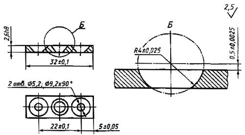 7.8.1 Ослабляют винты, крепящие пластину (рисунок 2), и поворачивают сферический образец (шарик) на угол 2 - 3°, обеспечивая смещение поверхности с пятном износа, после чего шарик снова жестко фиксируется пластиной с помощью винтов.