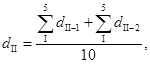 где dI-1, dII-1 - большая ось эллипса пятна износа в соответствующей серии испытаний;