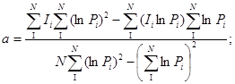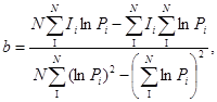 8.3 По результатам расчетов по 8.1.1 - 8.1.4 или 8.2.1 - 8.2.4 в зависимости от выбранного вида испытаний определяют параметры а и b логарифмической функции, аппроксимирующей зависимость интенсивности изнашивания I от давления Р