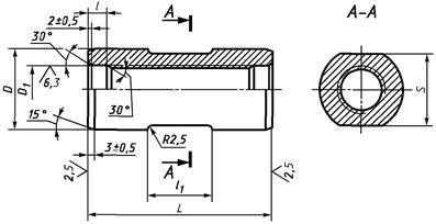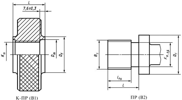 * Допуск относится к расстоянию между двумя любыми витками в пределах полной длины резьбы, за исключением одного полного витка с каждого конца резьбы. Для контрольных (установочных) пробок допуск шага относится к длине, равной длине резьбы сопрягаемого кольца. Для контрольных пробок, имеющих участки резьбы с полным и укороченным профилем, отклонения шага на обоих участках должны быть одного знака и одинаковыми в пределах 0,003 мм на длине, соответствующей длине калибра-кольца. ** Биение следует измерять на расстоянии от оси, равном Df/2 - (3,2 мм). *** Кольцо должно быть собрано с парной пробкой от руки без затягивания. |
