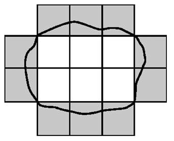 Подсчитывают число целых клеток и число клеток, частично входящих в поле измерения (см. рисунок).