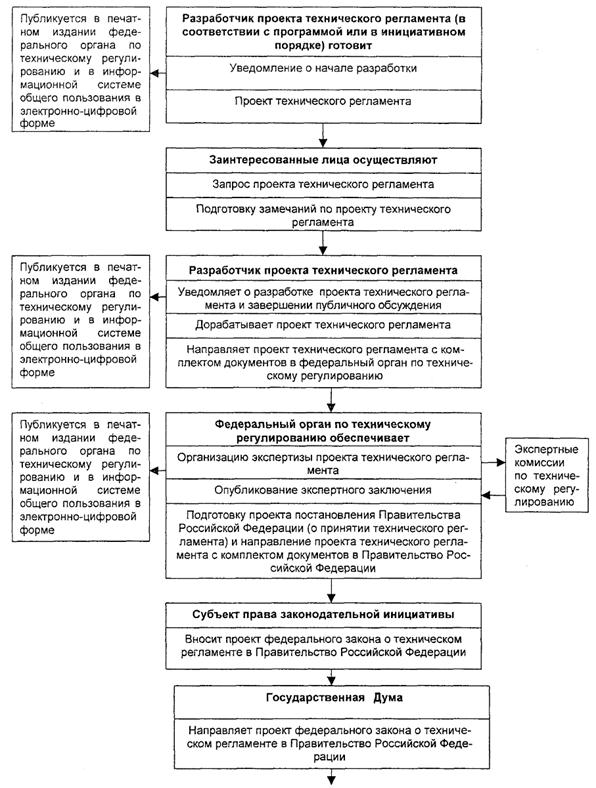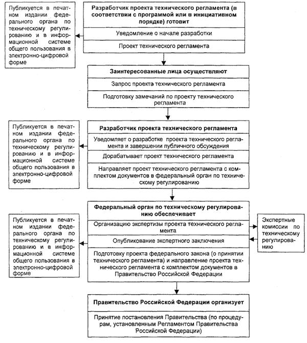 Необходимо учитывать, что технические регламенты - это не новый вид законов или постановлений Правительства, а принимаемые в установленном порядке законы и постановления Правительства, устанавливающие обязательные требования к продукции, процессам производства, эксплуатации, хранения, перевозки, реализации и утилизации. Поэтому в соответствии с положениями Федерального закона «О техническом регулировании» и Соглашением по ТБТ ВТО в отношении них должны быть выполнены определенные законом процедуры разработки.