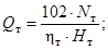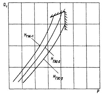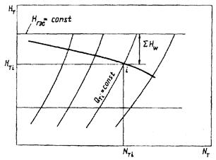 проводя линии Qт = const на расходно-мощностных характеристиках, определяют координаты Nт и Нт изолиний расходов и наносят их на эксплуатационную характеристику.