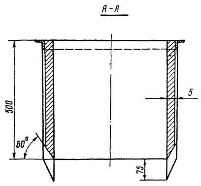Уголки в нижней части рамки выступают за ее края на 75 мм. Нижняя часть стенок рамки (трубы) и вертикальные уголки заострены, а к верхней части привариваются бобышки, по которым в случае необходимости можно бить кувалдой для погружения рамки (трубы) в топливо.