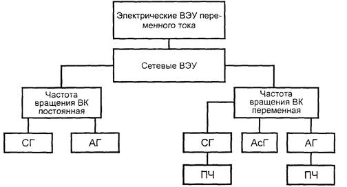 Общая схема классификации ВЭУ приведена на рисунке 1. Схемы классификации электрических ВЭУ переменного тока показаны на рисунках 2-4.
