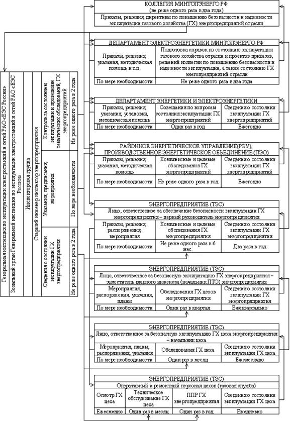 Структурная схема ведомственного надзора за состоянием газового хозяйства на энергопредприятиях (Минтопэнерго РФ) приведена в приложении 1 (см. вклейку).