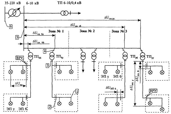 - верхнего и нижнего значений (с учетом знака) установившегося отклонения напряжения отдельно в режимах наибольших и наименьших нагрузок ЦП.
