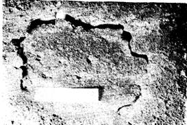 Рисунок 5 - Наросты продуктов коррозии на внутренней поверхности трубы Ду 700 мм (на переднем плане язва под разрушенным наростом)