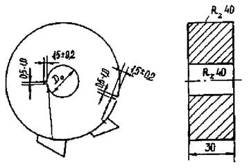 2. Настройка чувствительности проводится по надрезам в испытательном образце (рис. 11), изготовленном из шпильки контролируемого типоразмера.