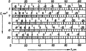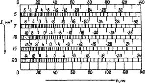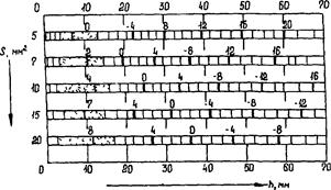 4 - линия развертки, 5 - шкала h, х = h tg α