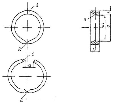 3.2.2. Кольца изготавливаются из пластмассы с помощью прессования, имеют замок и пружинящий элемент. В исходном состоянии кольца разомкнуты. Пружинящий элемент позволяет перед установкой раскрыть кольцо для того, чтобы надеть его на провод. При закреплении на проводе кольца обжимаются клещами, замок скрепляет устройство в замкнутое кольцо. Рекомендуемые размеры колец: толщина 3 - 5 мм, ширина 6 - 10 мм, причем для проводов большего диаметра должны применяться кольца большей толщины и ширины (рис. 7).