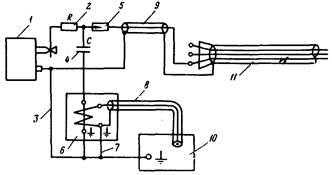 2 - прожигательная установка; 3 - разрядник; 4 - поврежденный кабель